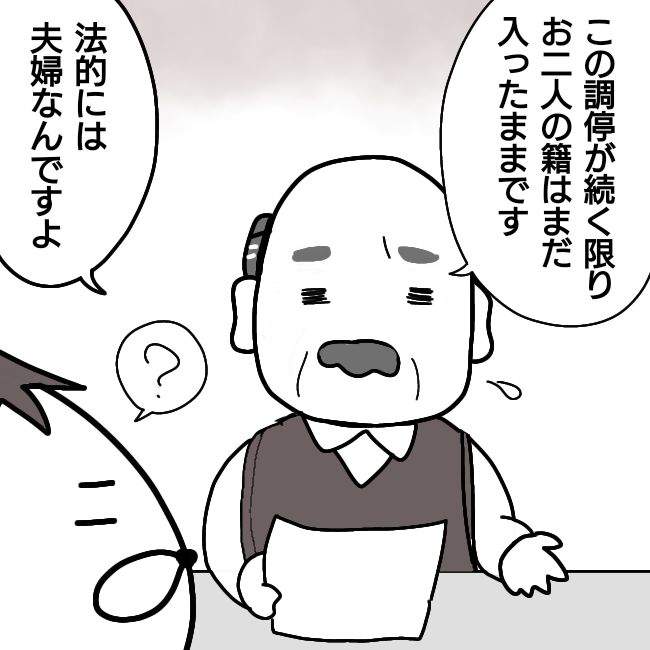 しかし、調停委員の「調停が続く限り夫婦である」というリスクを聞き、さつ丸の気持ちに変化が現れるのでした。