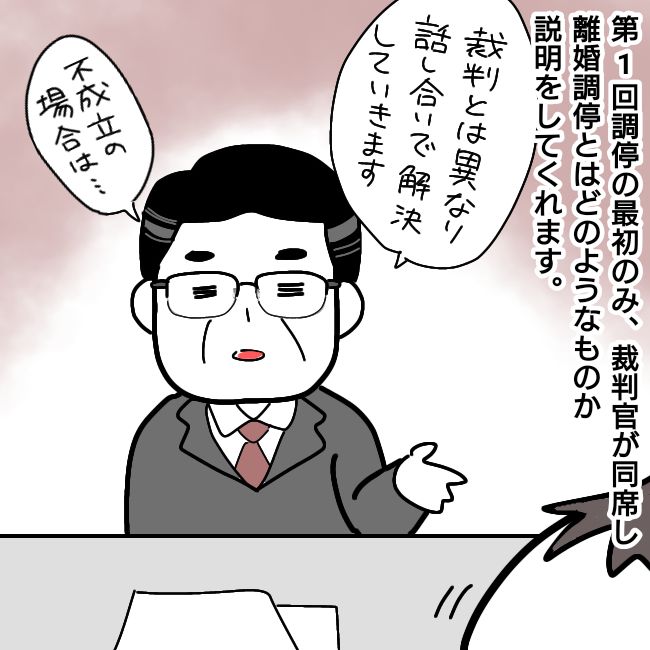 はたして親権を得られるのか。不安なまま調停室に入ると、そこには年配の調停員が男女1人ずつ座っていました。