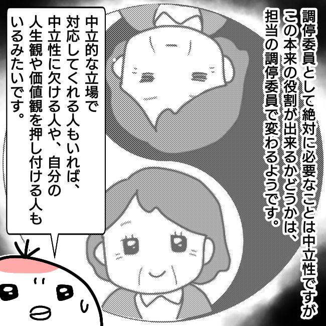 いよいよ始まった調停委員との話し合い。調停委員に必要なのは中立性ですが、担当者によっては自分の人生観や価値観を押し付ける人もいるよう…。