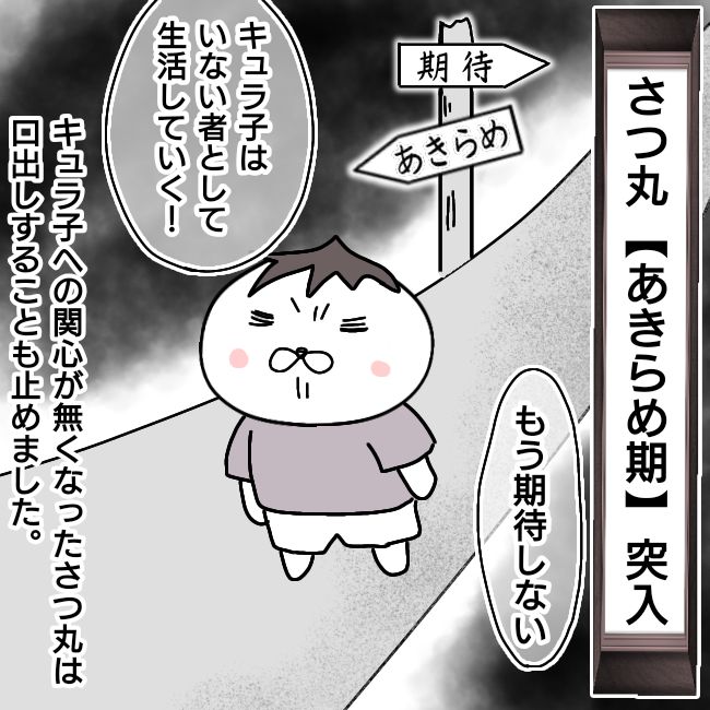 キュラ子への期待を持たない、関心を持たない「あきらめ期」に入り、キュラ子への愛情も薄れていくのでした…。