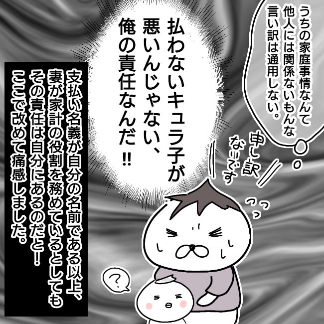 税金督促の一件で、お金のことをキュラ子に任せっぱなしにした自分にも責任がある、と痛感したさつ丸。