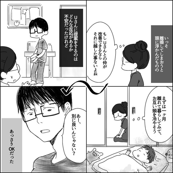 一緒に暮らす意味を見出せなくなったふゆ。変わらないUの言動についに別居することを決意したのです。
