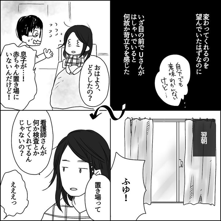 変わって欲しい、変わって欲しいと思っていたのに、いざ陽気なUさんを目の前にすると素直に喜べない私がいました。このころはUさんに対して自分の気持ちが不安定で、嬉しかったり逆にイラついたり…。