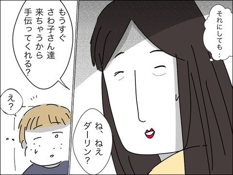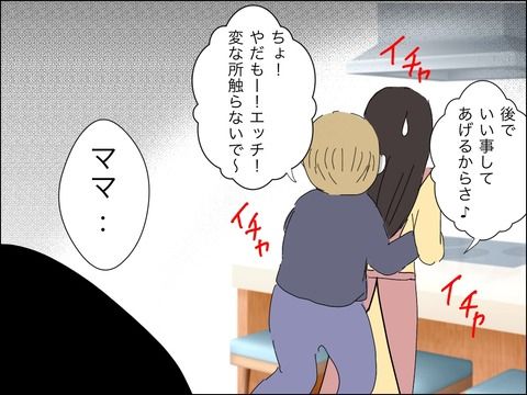 そして子どもがいるのにイチャイチャするドレミさんたち。先日子どもの前で妻を触っていたことといい、旦那さんの意識の低さが気になります。挙句の果てには「息子と僕どっちが大事なの」なんて絶対に聞いてはならない質問を…ドレミさんも困っていますがなんと答えるのでしょう?