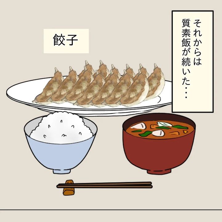 ご飯とお味噌汁と餃子だけって、人によっては質素って感じるんですね。つわり中でこれだけ用意してくれたら十分だと思いますが…。