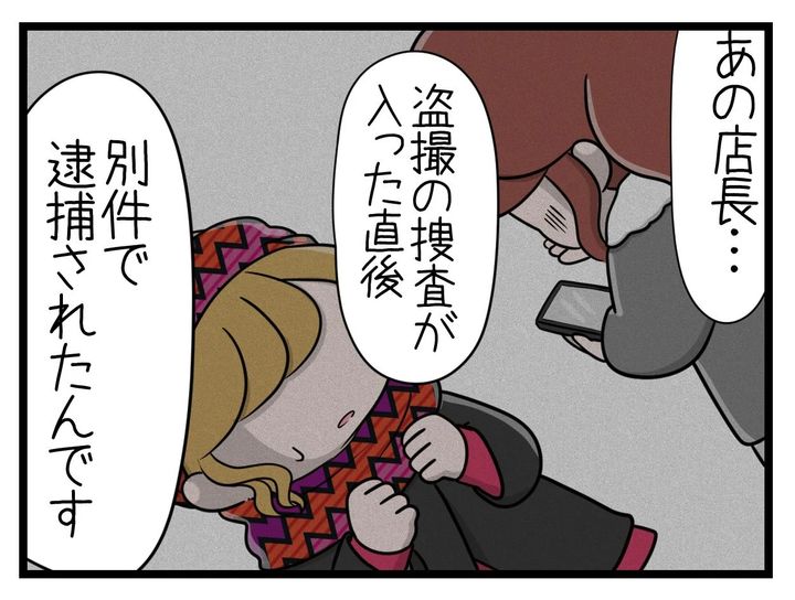 事実を知った夫が店に向かうと、すでに閉店済み。そんなとき、以前ショップで働いていた女性スタッフに遭遇する。そして、店長がトイレなどに隠しカメラを設置していることに気づき、「警察に相談した」と聞かされて…。