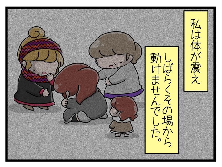 いちこは今までの店長の行動を思い出しながら、「狙われていたのは娘だった」と確信し、全身が震えその場に崩れ落ちます。
