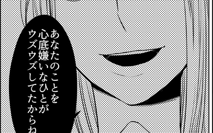 引っ越しを機に息子を保育園から格式のある幼稚園に入れた遙は、ママ友に嫌味を言われたり、ホームパーティーで阻害されたりしていた。そんな時にフォローしてくれたのがママ友の愛子。ところがその愛子こそが遙のウソの噂を流していたと知り驚愕する。ついに愛子に詰め寄り、愛子の行動理由を「ただ楽しんでるだけ」と伝えると、愛子は喜び始め…。