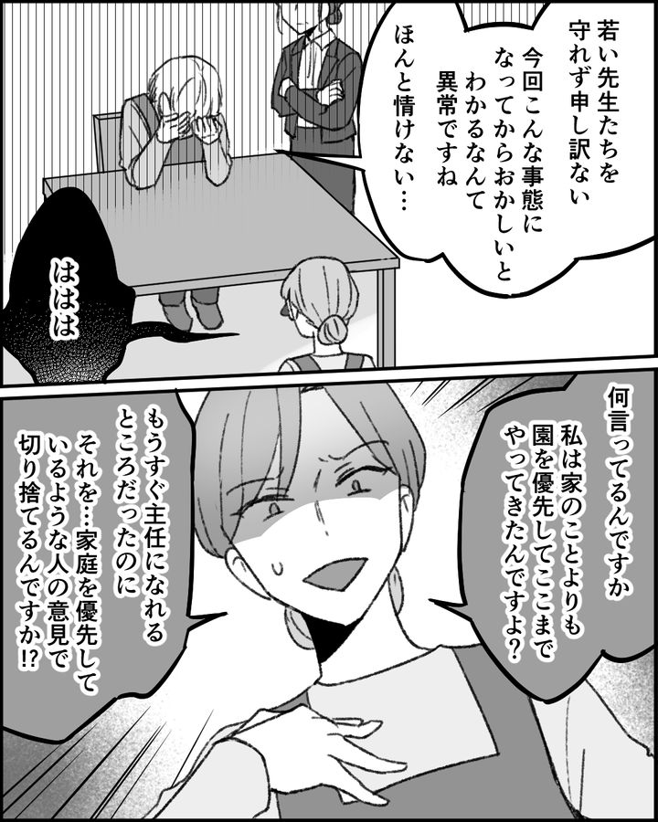 ほかの先生たちとの個別面談を経て、ようやく園長先生も理事長も久保田先生によるパワハラを認めざるをえなかったようです。