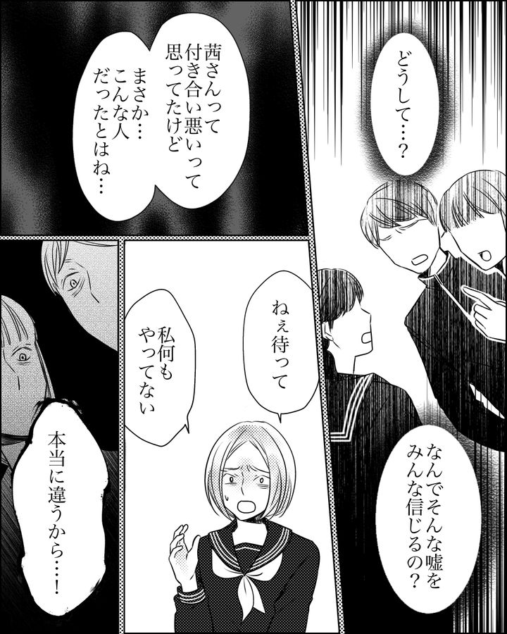 それまでにクラスで茜さんに何かされたとか、いじめられたとか、そのような話は出てきたことすらなかったのに…。茜さんはクラスに親友と呼べる人がおらず、彼女自身がどんな人か理解している人が少なかったことも、そんな噂が信じられてしまった要因だったかもしれません。
