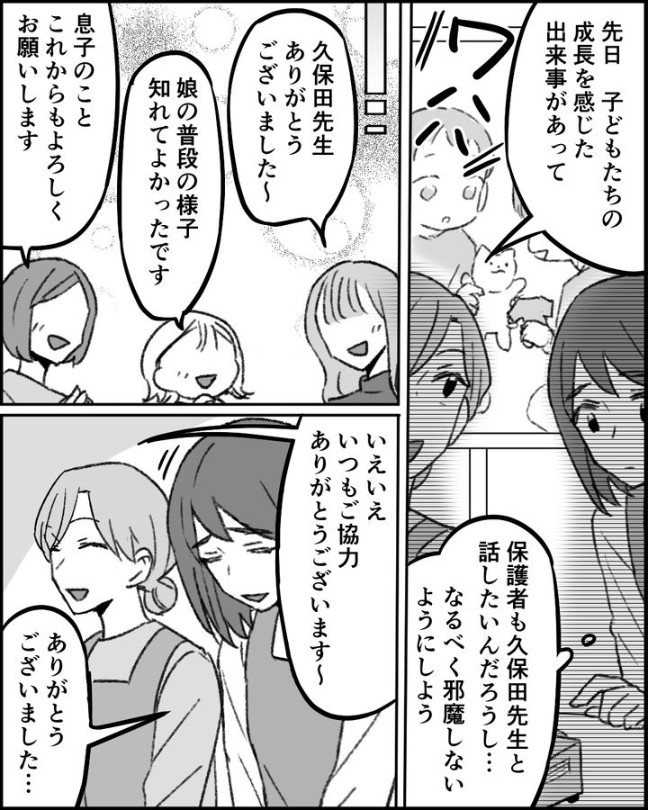 久保田先生は協力的な夫を頼り、子育ての大半は夫に任せ。自分は保育士の仕事に集中しようと考えていた。若い保育士に仕事を任せておけず、自分がいないと保育園はまわらないのだと息巻く久保田先生だったが…。