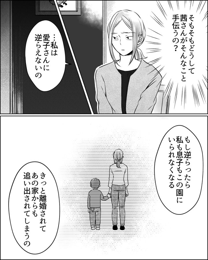 すると茜さんが「私は愛子さんに逆らえないの」と言い始めて。もし逆らえば、茜さん親子が自分の家からいられなくなってしまうと…。