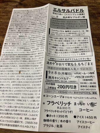 珈琲の香 住所:東京都小平市美園町1-8-1 電話番号:042-342-5777 アクセス.:西武多摩湖線(萩山-多摩湖)小平駅南口 徒歩2分 営業時間:10:00〜20:00 定休日:水曜日 https://www.kodaira-net.jp/kd5000030/