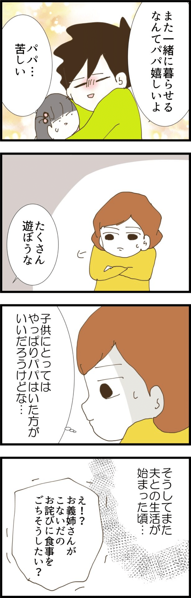 また家族3人で暮らせることにとても喜んでいる夫を見て、妻は子どもにとっては父親がいたほうがいいのだろうと考えはするものの、10年後を見据えていました。