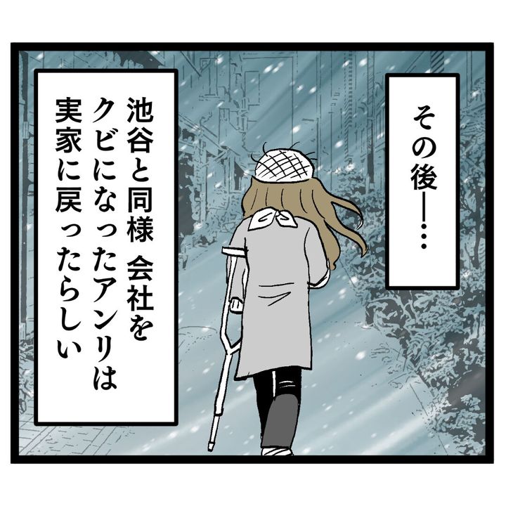 混乱が広がる中、池谷の妻から出産したと連絡が入る。妻は「離婚します」と宣言し、池谷は会社をクビに。一方、アンリに“階段から突き落とされた過去”のあるヨシ子先輩は、アンリを罪に問わないつもりだといい…。