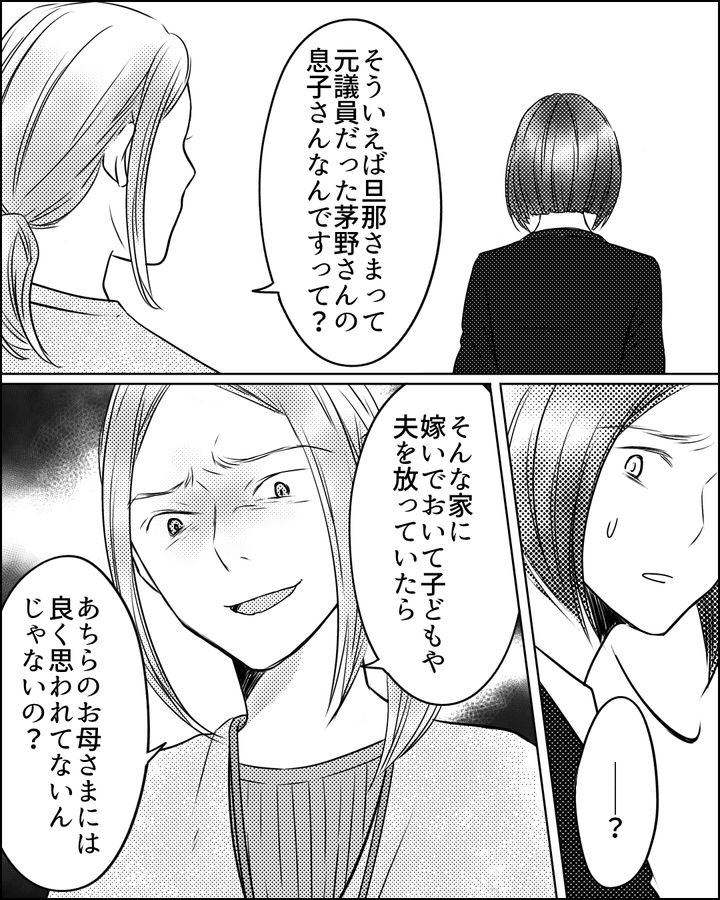 しかも、茜さんは義母のことを知っている様子。義父は元議員で義実家は確かに地元で名が知られていますが、何か引っかかるものがありました。