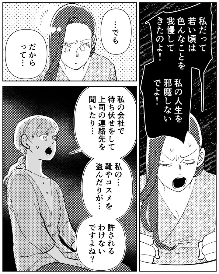お義母さんが若いころに苦労と我慢を重ねて、夫のことを愛情持って育ててくれたのは間違いないんです。だからといって、私のものを盗んだりなどの奇行を見ないふりはできません。