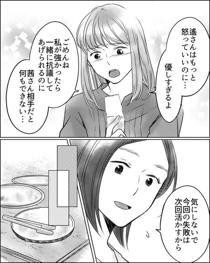 まさか幼稚園のママ友の集まりが、こんな高級志向のホームパーティだったとは…。驚きながら立ち尽くしていると、ママ友の愛子さんが声をかけてくれ、「遙さんはもっと怒っていい。やさしすぎるよ」と同情されてしまうことに…。
