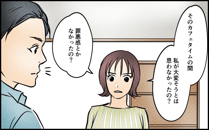 私に全部押し付けて、自分はモーニングコーヒーを楽しんでいたなんて呆れて物も言えません。「妻が子どもの世話をするのは当たり前」って、笑いながらよくそんなことが言えるよね…。
