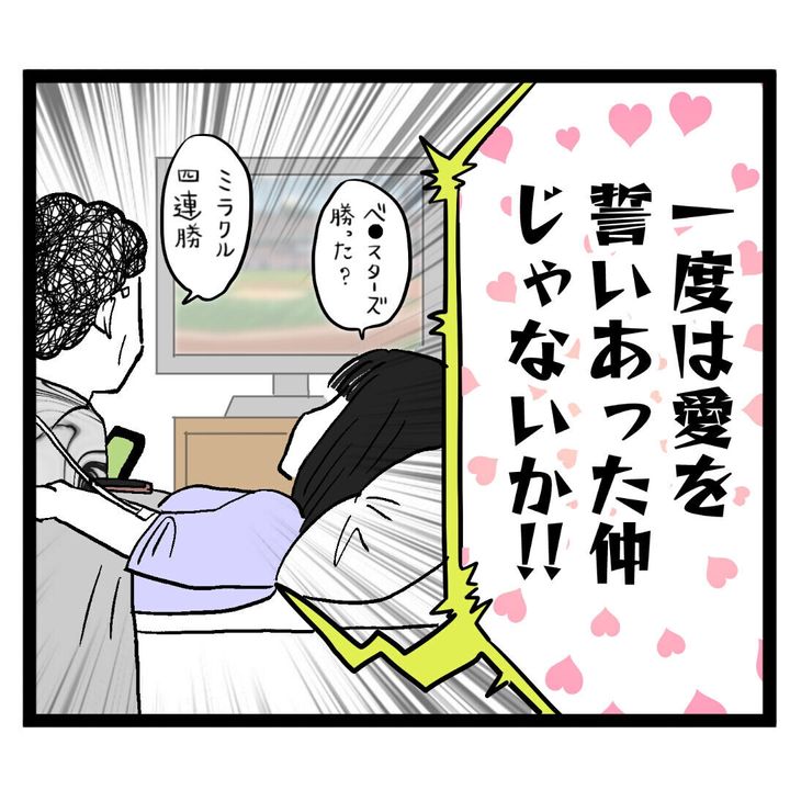 一方、野球に見入る妻は、あまり話を聞いていないようで…?