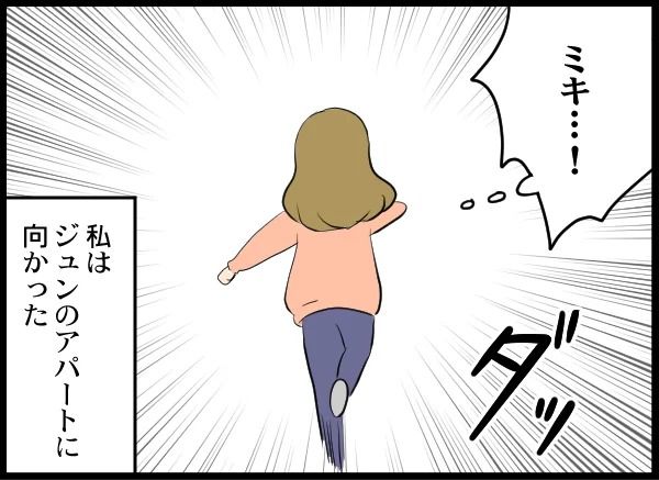 面会終了時間を1時間過ぎても、ジュンからの連絡が一切ないのです! 不安に駆られた妻は、ジュンが住むアパートに車を走らせました。アパートのドアの前まで来ると、中から子どもの泣き声が!