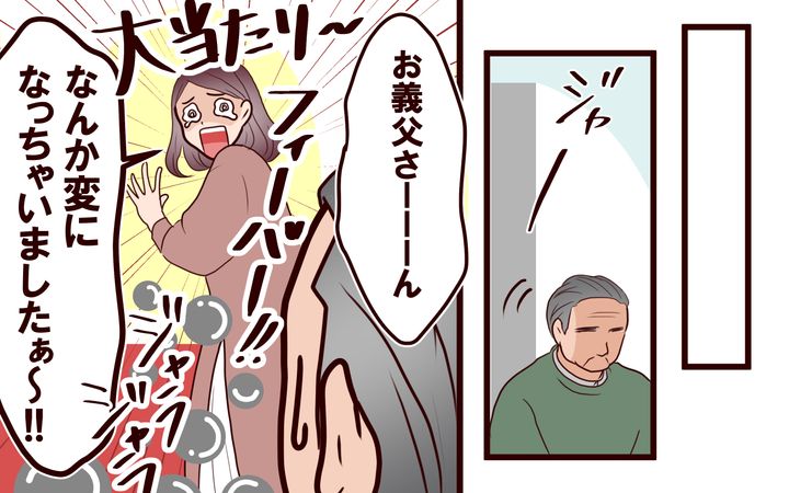そして、お義父さんから代打ちを頼まれると、まさかの大当たり! 私はアタフタしましたが、このとき初めてお義父さんの優しい笑顔が見れました。