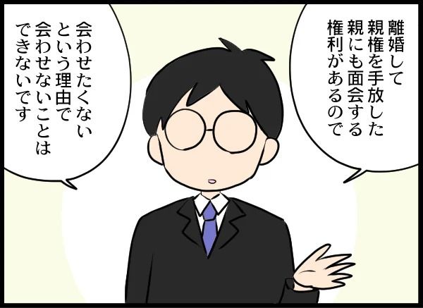 夫は離婚を渋り、妻に何度も連絡していましたが、相手女性に押され離婚に合意します。晴れて離婚が成立するも、残る問題は「娘を夫に会わせなくてはいけない」こと。さて、妻はどうするのでしょうか…。