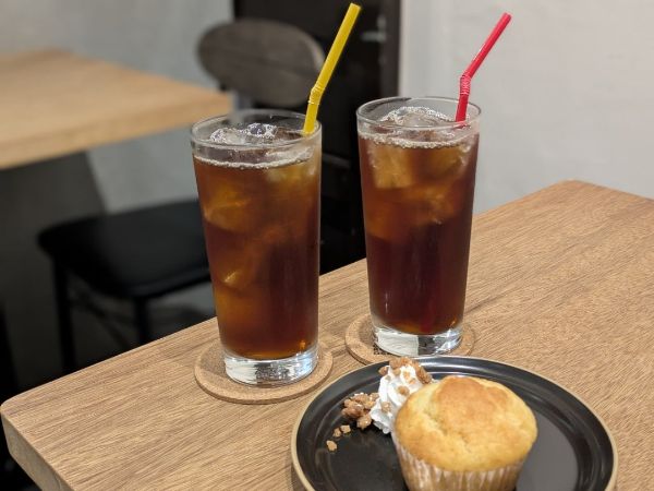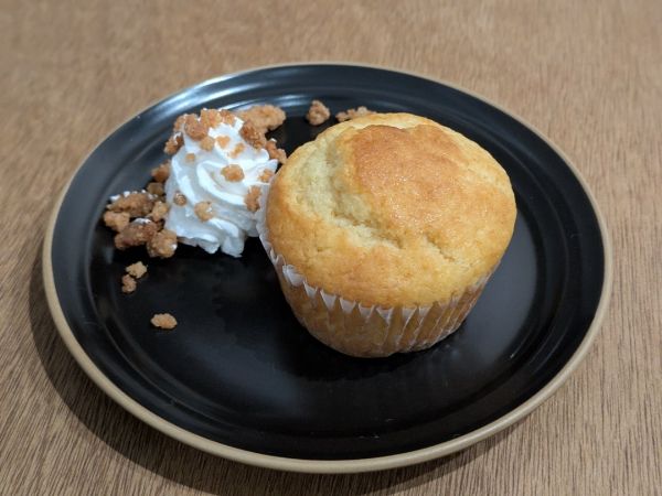 コーヒーと一緒に、スイーツを注文するのもおすすめです。プレーンのマフィン(450円)をいただきました。季節限定のスイーツもあります。ほろ苦いコーヒーと甘いマフィンは相性抜群です。また、プラス100円でホイップクリームの増量もできるみたいなので、甘いものがたくさん食べたいときには増量してみるのもありです。