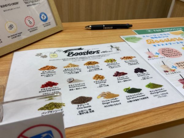 メニューはオーガニックスムージー8種類 × トッピング15種類。