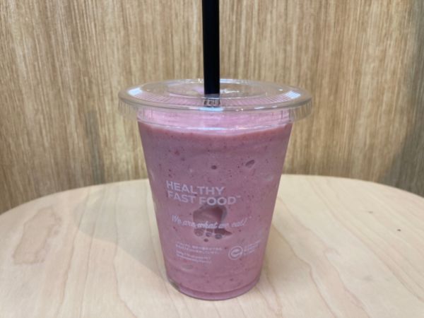 初めての訪問では、「ケールマンゴー(+デーツ+スピルリナパウダー)」と「ストロベリーバナナ(+ココナッツ)」をチョイス。