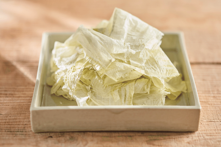 北海道産の良質な昆布を創業時からつぎたされた秘伝の酢で漬け込み、特殊な包丁で一枚一枚、手削りで仕上げています。