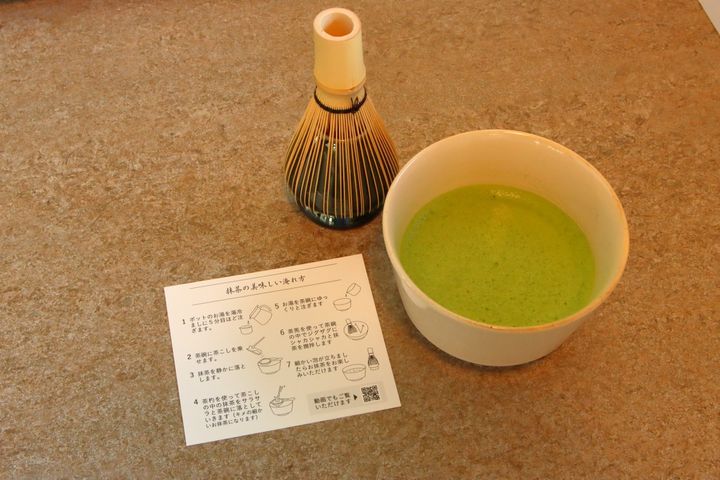 抹茶をおいしく淹れるための説明書がついてくるので、初心者でも安心。お湯の量や抹茶を茶碗に入れる際の注意点、茶筅(ちゃせん)の動かし方まで書いてあります。説明書の二次元コードを読み取れば動画でも確認できますよ。