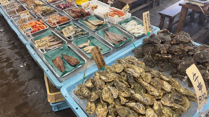そんな空腹を満たすために今回訪れたのは、神社から車で5分ほどの場所にある「カキ小屋 飯岡屋水産」。地元で水揚げされた魚介を味わえる人気の直売所兼食事処です。