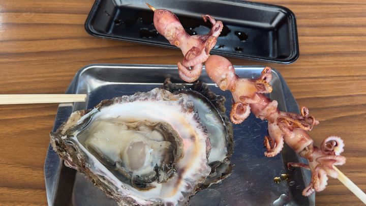 私が今回注文したメニューは、ぷりぷり食感の牡蠣と旨みたっぷりのいいダコ。牡蠣は焼いて食べるのももちろん絶品ですが、「生食で食べたい」と注文時に伝えれば、生ガキとして食べることもできます。大ぶりで濃厚な身は、一口で海の恵みをそのままいただいているような贅沢さです。
