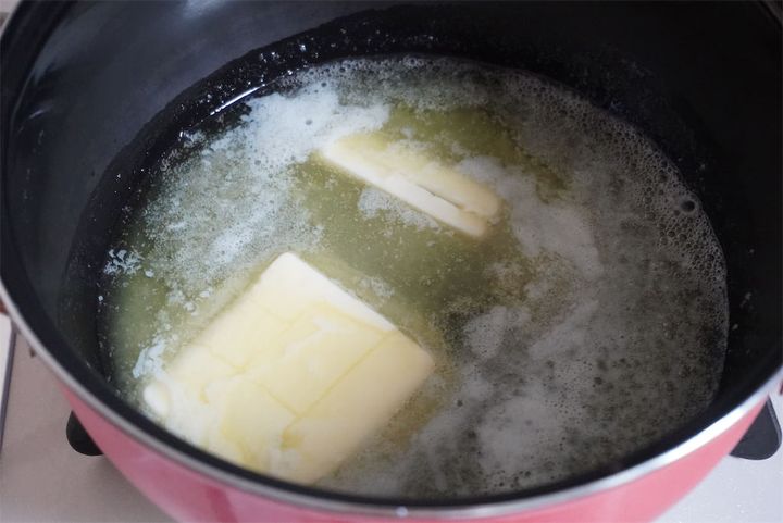 1. 鍋にバターを入れて中火にかけ、泡立つまで煮立てる。