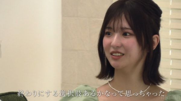 あやなはたつやかいぶきが気になっているものの、「(みんなが)押し付け合いみたいになってるの見てられない」「みんなは頑張る相手が確定してるのに、私だけまだ迷ってる自分がいる」と言い、それなら自分が笑顔で「頑張ってね」と他の参加者の恋を応援するという決断に至ったのだ。