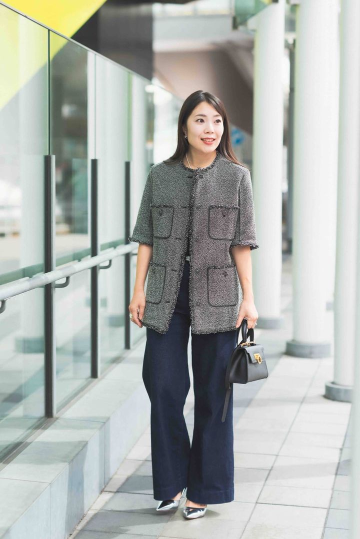 秋に映える半袖ツイードジャケットが主役のデニムスタイル