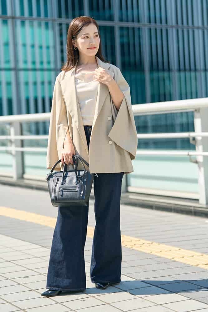 季節感もスタイルアップも両方叶える大人のフレアデニム術