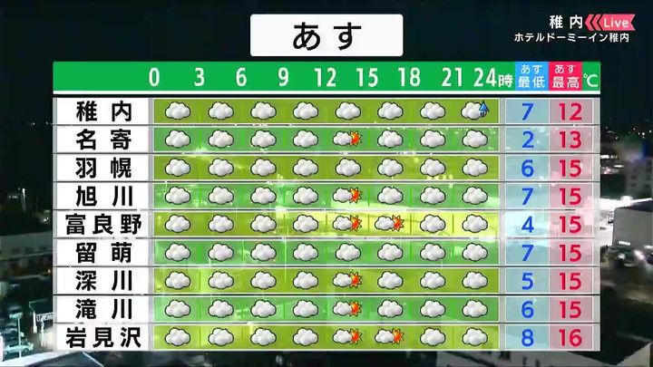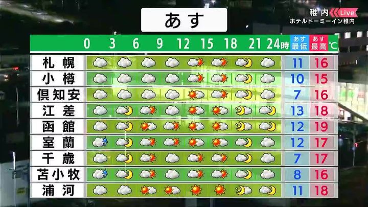 ・あすの札幌の朝昼晩の天気