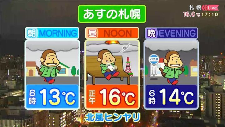 あす17日(金)の札幌です!朝昼晩の天気をもんすけでお伝えします!