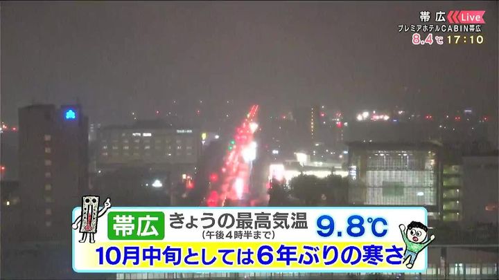 帯広のきょう16日(木)の最高気温は9.8度。このまま上がらなければ、この時期としては6年ぶりの寒さになりそうです。日ざしがなく、冷たい空気が流れ込んだ影響で気温の上がり方が鈍くなりました。