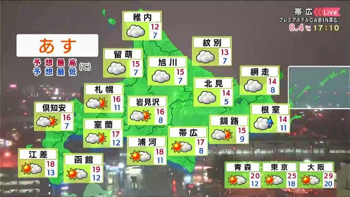 背景は16日午後5時ごろの帯広情報カメラ