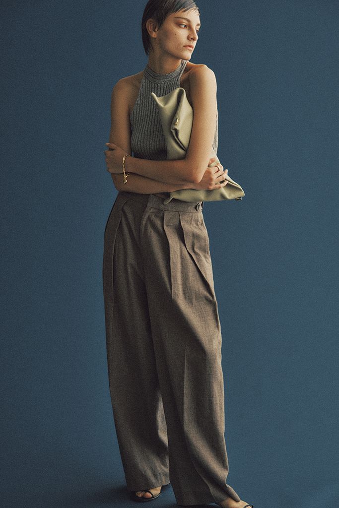 上下のシルエットに差をつけて、ボディラインにメリハリを生む常套手段。これからはリブニットやカーディガン、ジャケットに置き換えて、旬のワイドシルエットパンツのトップスは「短くコンパクトに」することで、スタイル・バランスUPを両得。メリハリの効いたシルエットで、ぼやけて見えがちなワントーンも攻略。 グレーニットトップス/styling モカパンツ/SACRA(インターリブ)