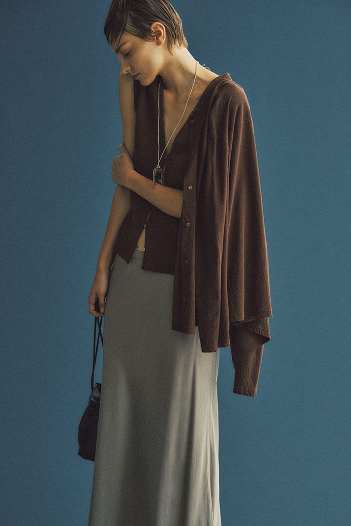 ルーズ=オーバーサイズとは限らない。薄手のニットやサテンなど、くたっと縦落ちする素材を合わせれば「力みなくキレイ」な印象に。すべてやわらかい素材だから、キレイめな服だけでまとめても堅苦しく見えない。 茶ニットベスト/HER. 茶カーディガン/THE SHINZONE グレースカート/プルミエ アロンディスモン