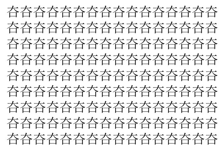 【脳トレ】「夻」の中に紛れて1つ違う文字がある!?あなたは何秒で探し出せるかな??【違う文字を探せ!】
