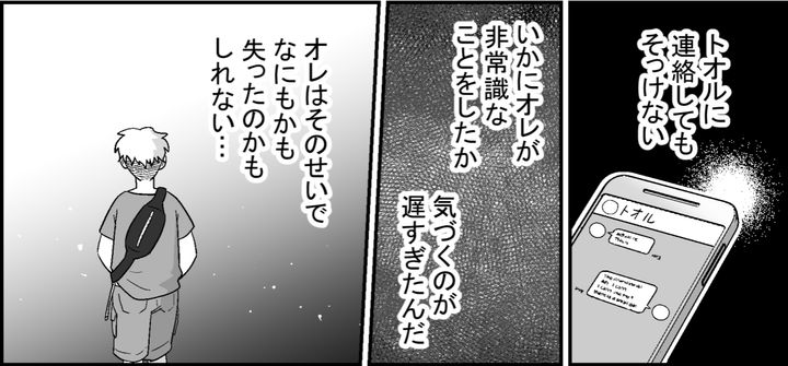 トオルの家でとった行動がいかに非常識だったかということを、オレは彼女から指摘されてしまった。そして彼女は「自分もいずれ同じ目に遭う」とオレを突き放し、別れを告げて帰っていったのだ。ただの飲み会での笑い話のはずだったのに、まさかこんなことになるとは……。