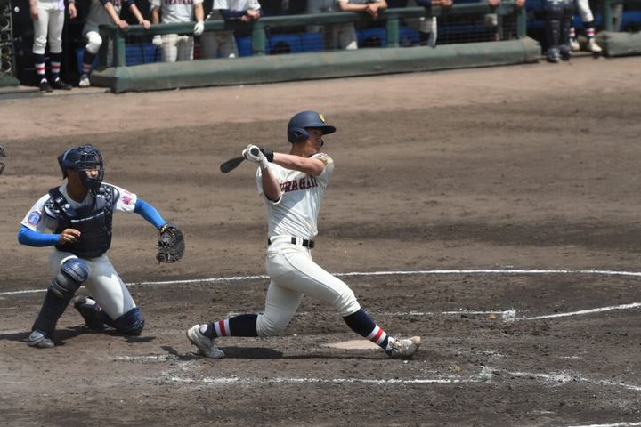 そんな印象が大きく変わったのは3年春の関東大会の対横浜戦だ。体つきは上半身も下半身も秋と比べて見違えるほどたくましくなり、秋とは別人のように打撃が力強くなっていたのだ。相手の先発は早くも来年のドラフト1位候補と言われている織田翔希(2年)だったが、第2打席でセンター前に鋭くはじき返すと、9回の第4打席では打った瞬間に分かるソロホームランをライトスタンドに叩き込んで見せた。体が大きくなってパワーがつくと、どうしても力任せなスイングになる選手も多いが、垣内はそういうところがなく、バランス良く全身を使って振れるのが大きな長所だ。ホームランも結果としてはライト方向だったものの、決して強引に引っ張ったバッティングではなく、きれいに振りぬいたものだった。また外野の守備についても打球に対する反応や捕球から送球までの動きも素早くなっており、肩の強さがより生きるようになった印象だ。