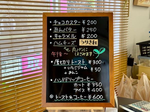 店内にはイートインスペースもあり、「トースト&コーヒー」(600円)などのメニューも用意されています。 焼きたてのパンの香りに包まれながら、ほっと一息つく時間も贅沢ですね。