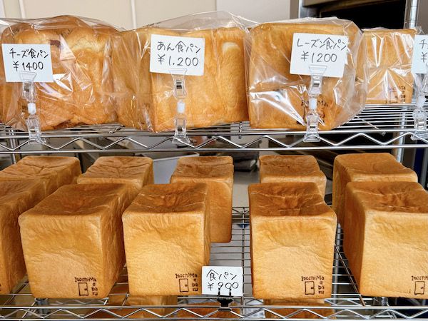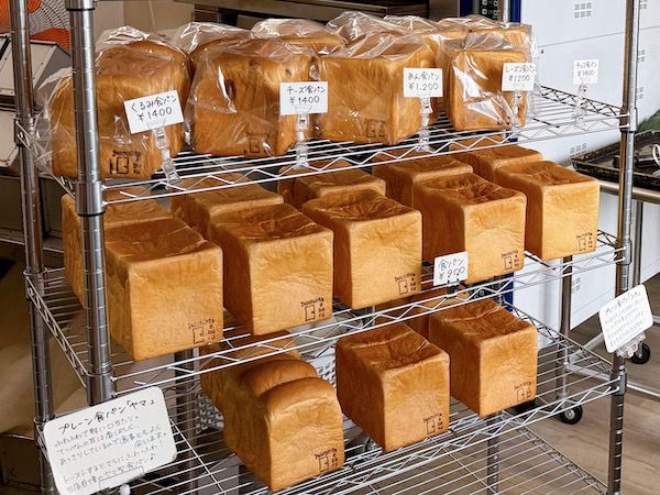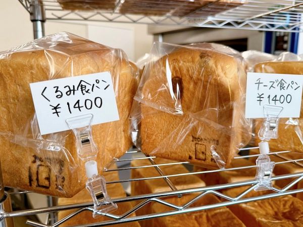 プレーンのほか、「くるみ食パン」や「チーズ食パン」、「あん食パン」に「レーズン食パン」などが並びます。訪れた日は早くも「チョコ食パン」が売り切れ。人気の高さがうかがえます。