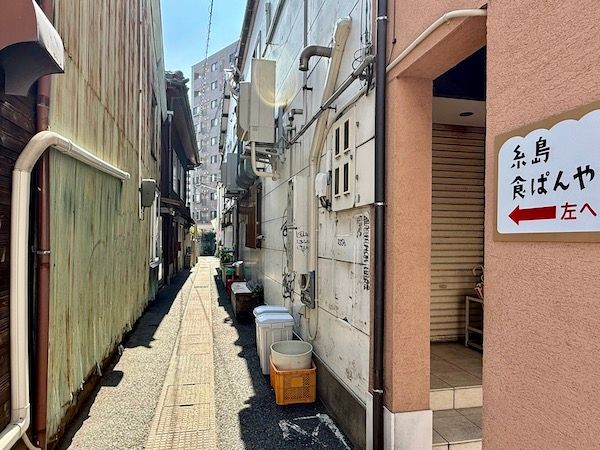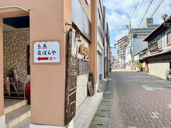 近くのコインパーキングに車を停め、『糸島食ぱんや』と書かれた看板の矢印に導かれるように左へ曲がると、そこは少し静かな路地。